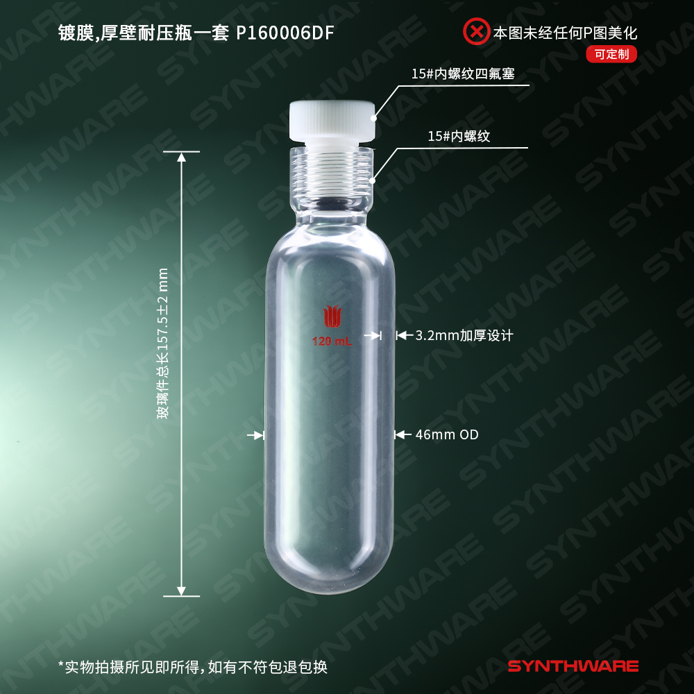 耐压瓶 > 厚壁耐压瓶 > 镀膜-防腐密封圈(细管)耐压瓶 > SYNTHWARE > 库存售完即止,镀膜,厚壁耐压瓶一套,四氟全包O型圈,容量:120ml,15# P160006DF