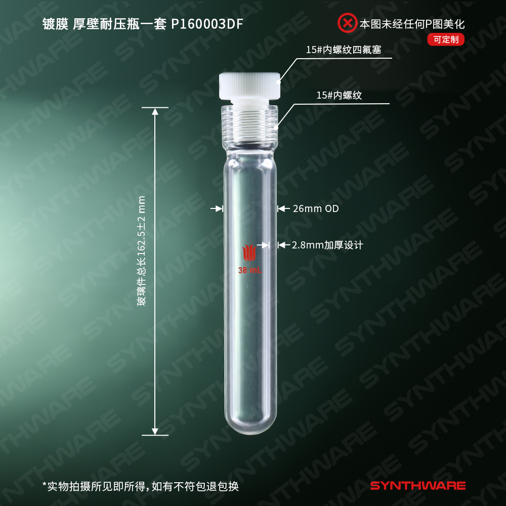 耐压瓶 > 厚壁耐压瓶 > 镀膜-防腐密封圈(细管)耐压瓶 > SYNTHWARE > 库存售完即止,镀膜 厚壁耐压瓶一套,四氟全包O型圈,容量:38ml,15# P160003DF