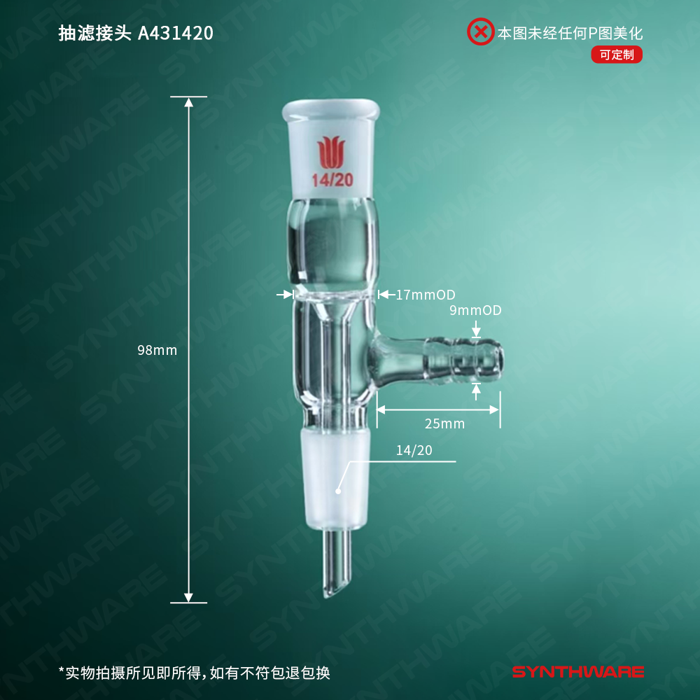接头类 > 抽滤接头 > 抽滤接头 > SYNTHWARE > 抽滤接头,小咀外径8mm,磨口14/20 A431420