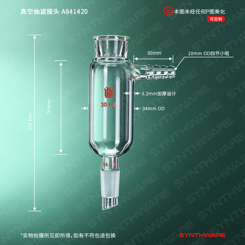 上口可垫一个P10系列的橡胶圈,之上放置一个漏斗。右侧小咀处抽真空,下口接液体接收瓶。