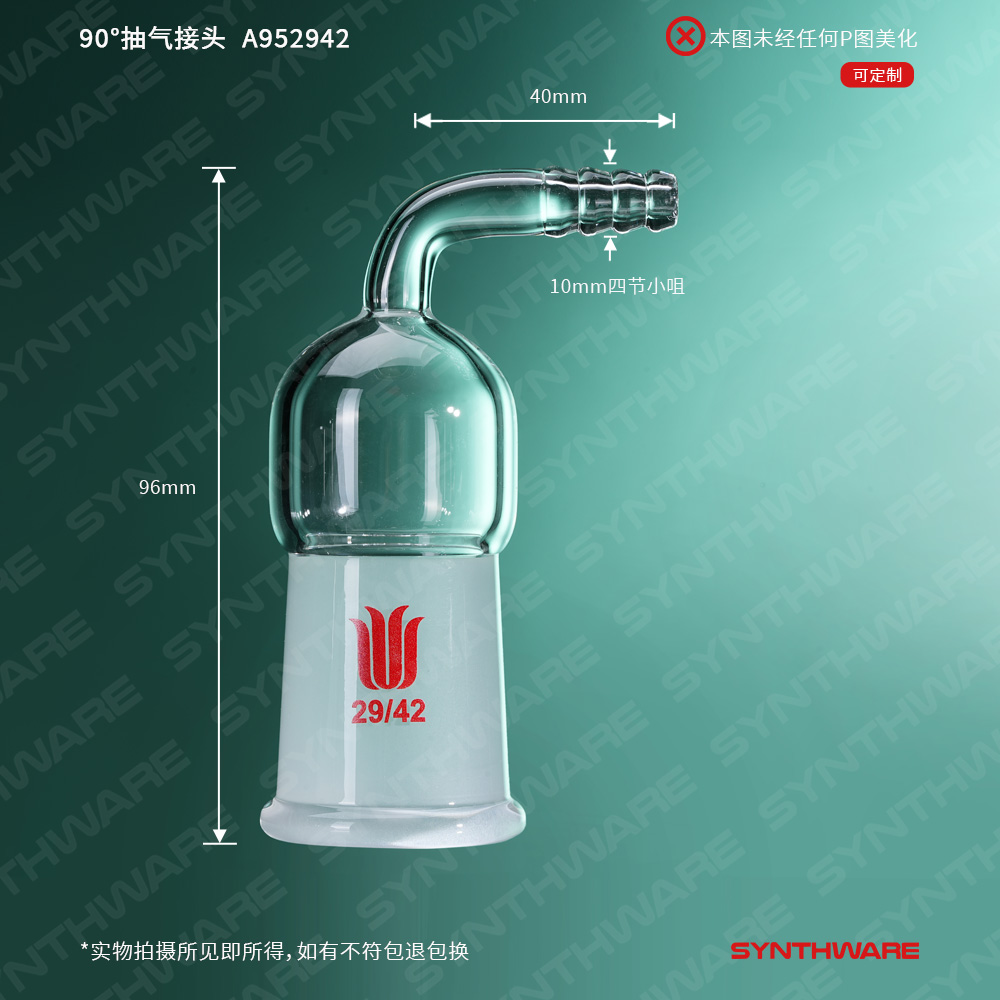 接头类 > 抽气接头 > 90°-内磨口抽气接头 > SYNTHWARE > 90°抽气接头,内磨口:29/42,φ10小咀接口 A952942