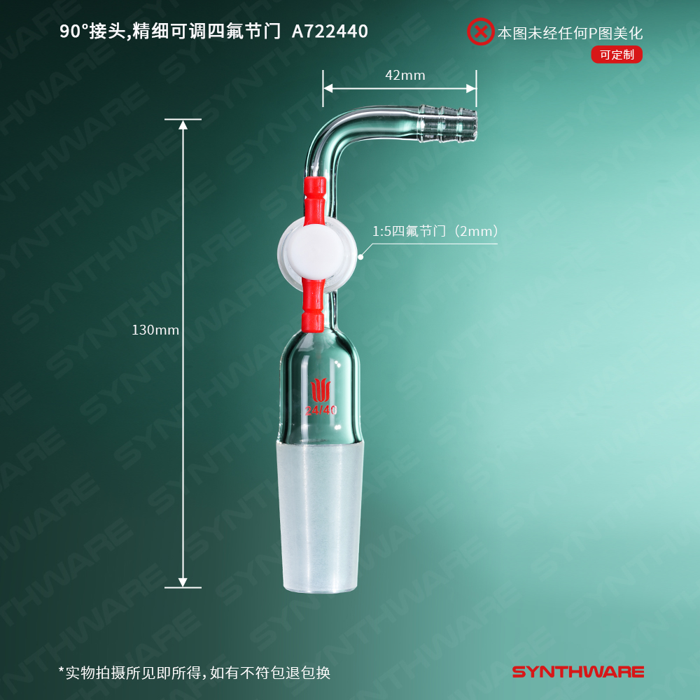 # 具2mm孔径四氟节门设计,标准1:5锥度精密研磨,旋塞磨口抛光处理,延长四氟旋塞使用寿命,确保良好的密封性和互换性。四氟节门内具有一个调节针阀,可以对添加到体系中的液体或气体流量进行精细控制。