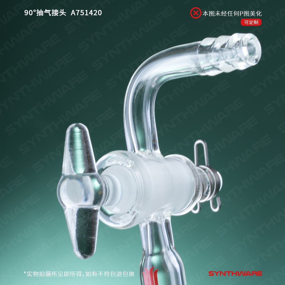 具G2砂芯,90°抽气接头,玻璃节门,14/20,2mm节门孔径 A751420C