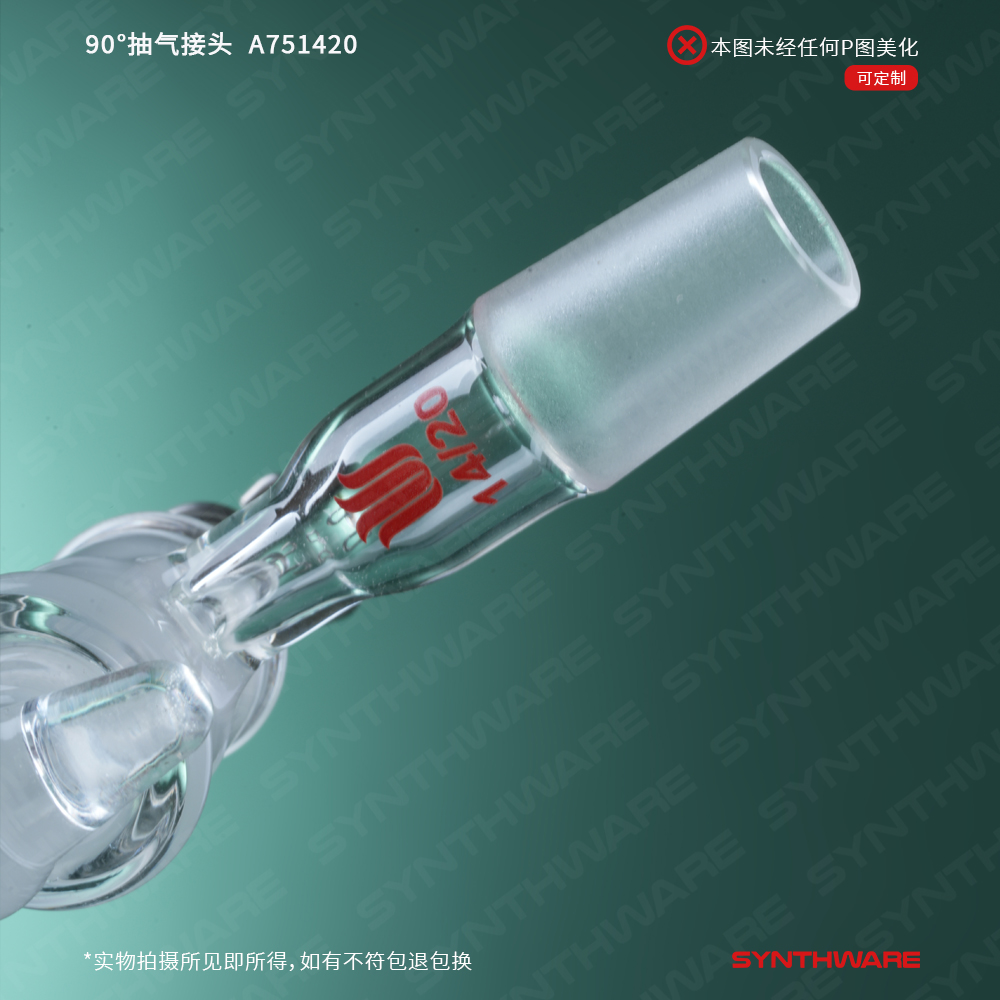 90°抽气接头,玻璃节门,14/20,2mm节门孔径 A751420