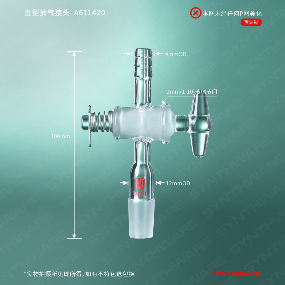 用于控制进入反应体系气体或液体的流量,可互换玻璃节门孔径为2mm