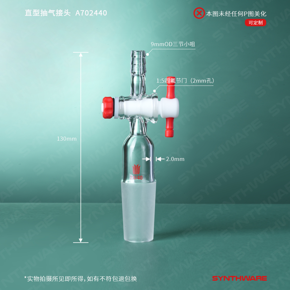 直型抽气接头,具四氟节门,40/50,4mm节门孔径 A704050