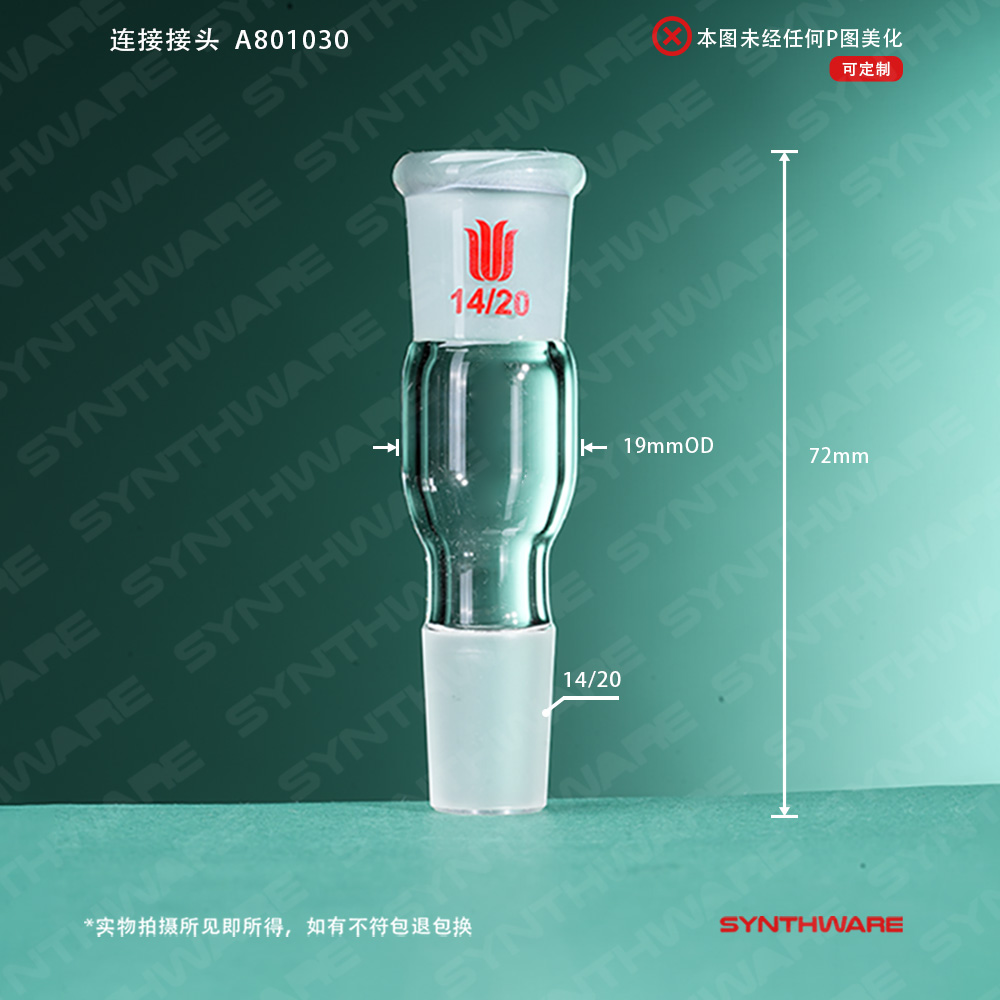 接头类 > 磨口连接接头 > 内外磨口连接接头 > SYNTHWARE > 连接接头,14/20,磨口间(不含磨口)距离:30mm A801030