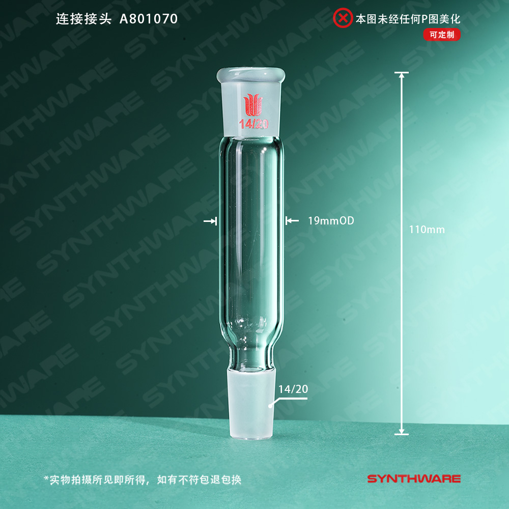 接头类 > 磨口连接接头 > 内外磨口连接接头 > SYNTHWARE > 连接接头,14/20,磨口间(不含磨口)距离:70mm A801070