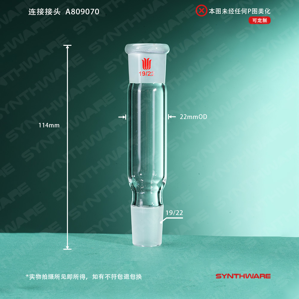接头类 > 磨口连接接头 > 内外磨口连接接头 > SYNTHWARE > 连接接头,19/22,磨口间(不含磨口)距离:70mm A809070