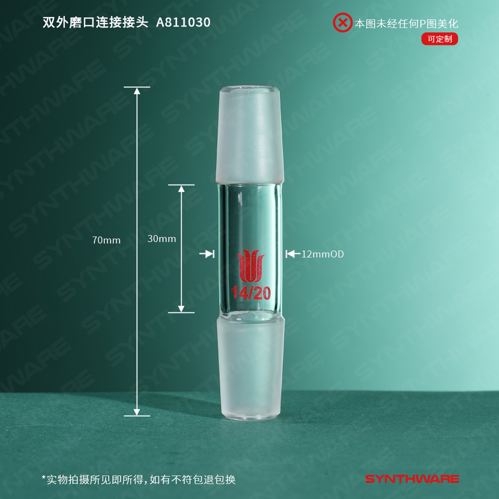 接头类 > 磨口连接接头 > 双外磨口连接接头 > SYNTHWARE > 双外磨口连接接头,14/20,磨口间距(不含磨口):30mm A811030
