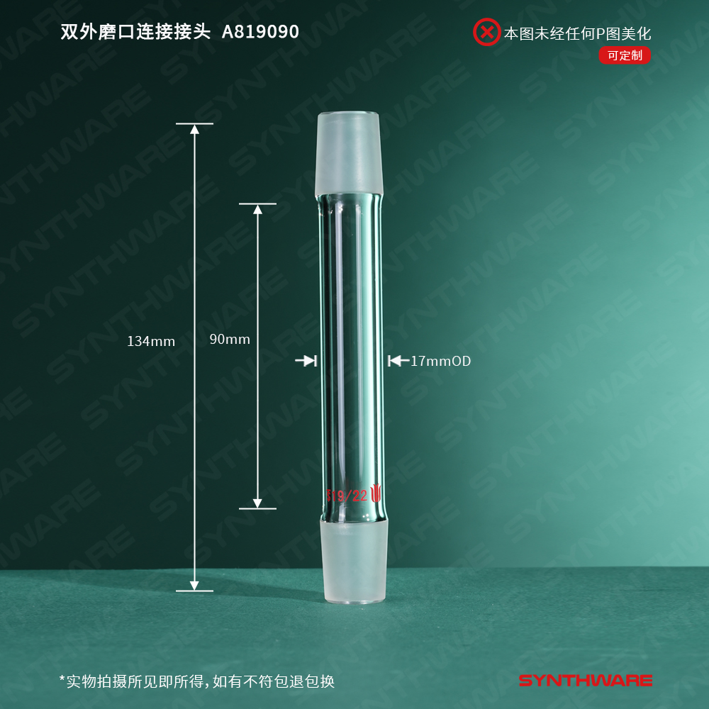 接头类 > 磨口连接接头 > 双外磨口连接接头 > SYNTHWARE > 双外磨口连接接头,19/22,磨口间距(不含磨口):90mm A819090