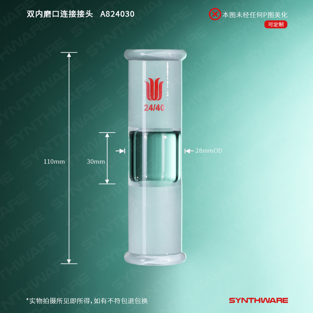 接头类 > 磨口连接接头 > 双内磨口连接接头 > SYNTHWARE > 双内磨口连接接头,24/40,磨口间距(不含磨口):30mm A824030
