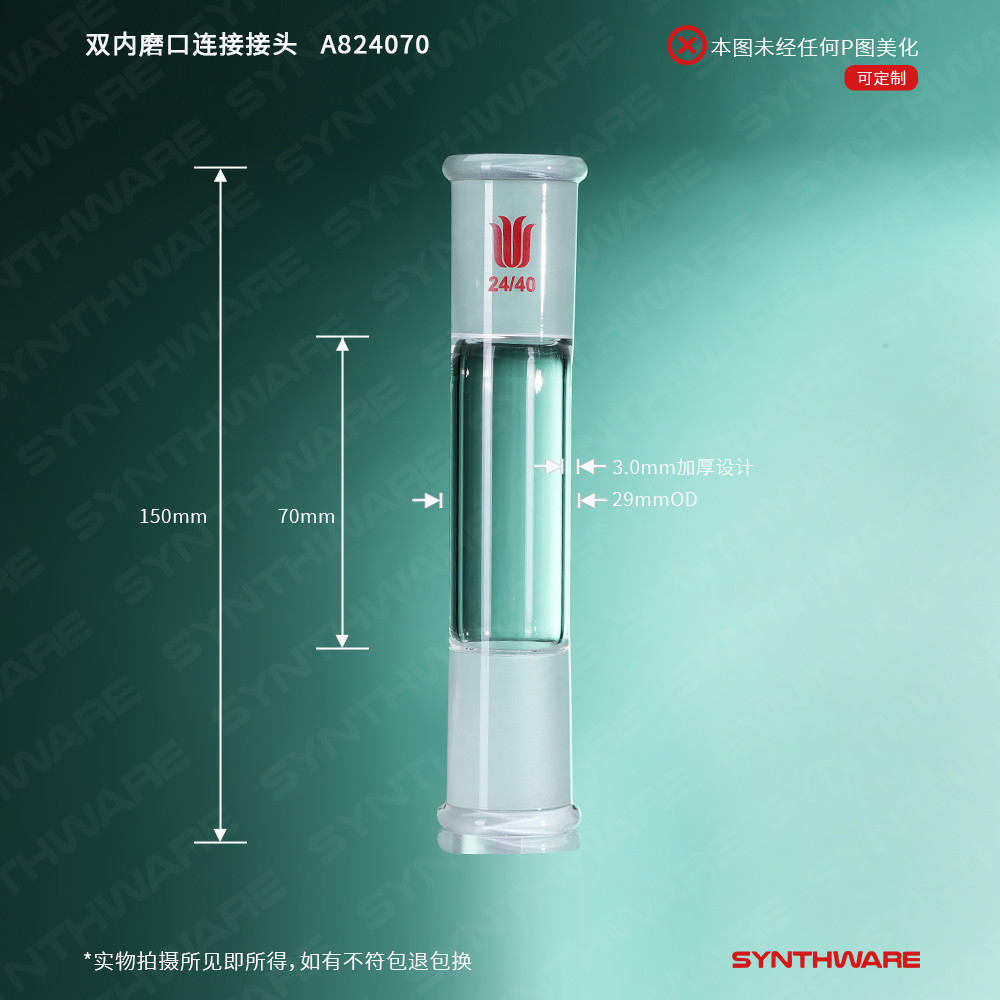 接头类 > 磨口连接接头 > 双内磨口连接接头 > SYNTHWARE > 双内磨口连接接头,24/40,磨口间距(不含磨口):70mm A824070