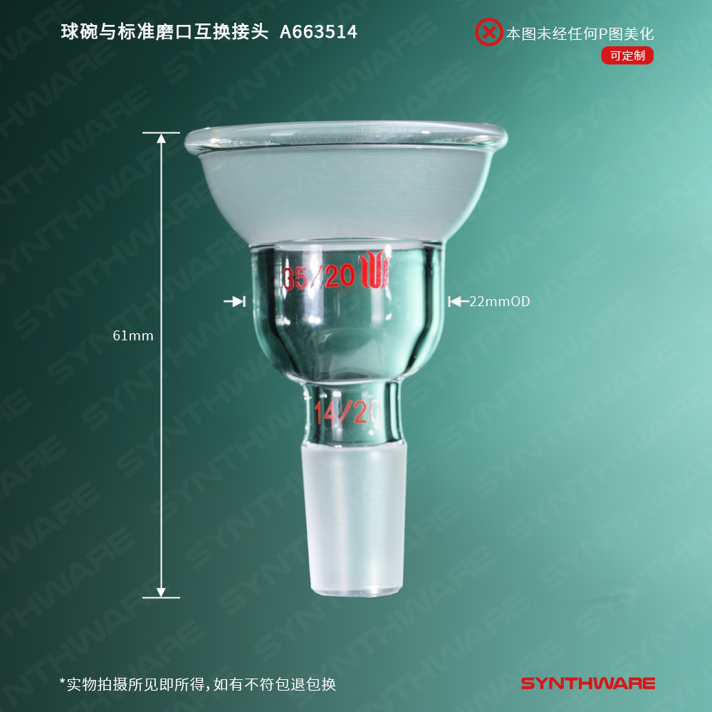 球碗与标准磨口互换接头,上球碗:35/20,下磨口:14/20 A663514