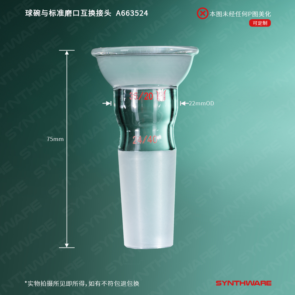 球碗与标准磨口互换接头,上球碗:35/20,下磨口:24/40 A663524