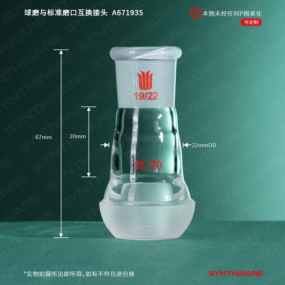 球磨与标准磨口互换接头,上磨口:19/22,下球磨:35/20 A671935