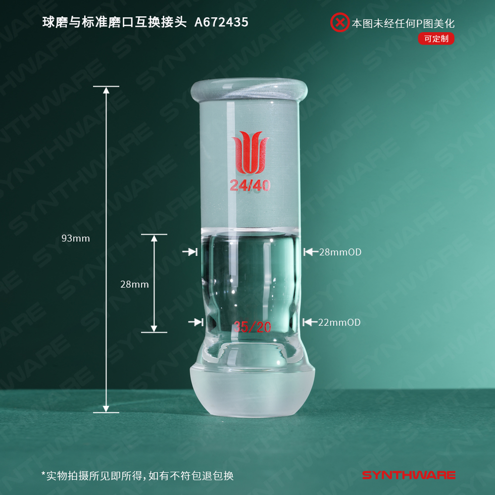 球磨与标准磨口互换接头,上磨口:24/40,下球磨:35/20 A672435