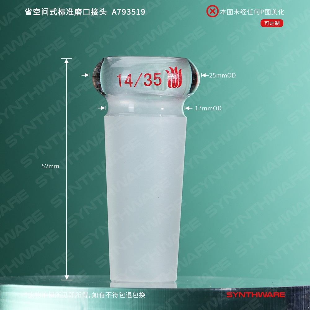 接头类 > 省空间接头 > 省空间式标准磨口接头 > SYNTHWARE > 省空间式标准磨口接头,14/35-19/38 A793519