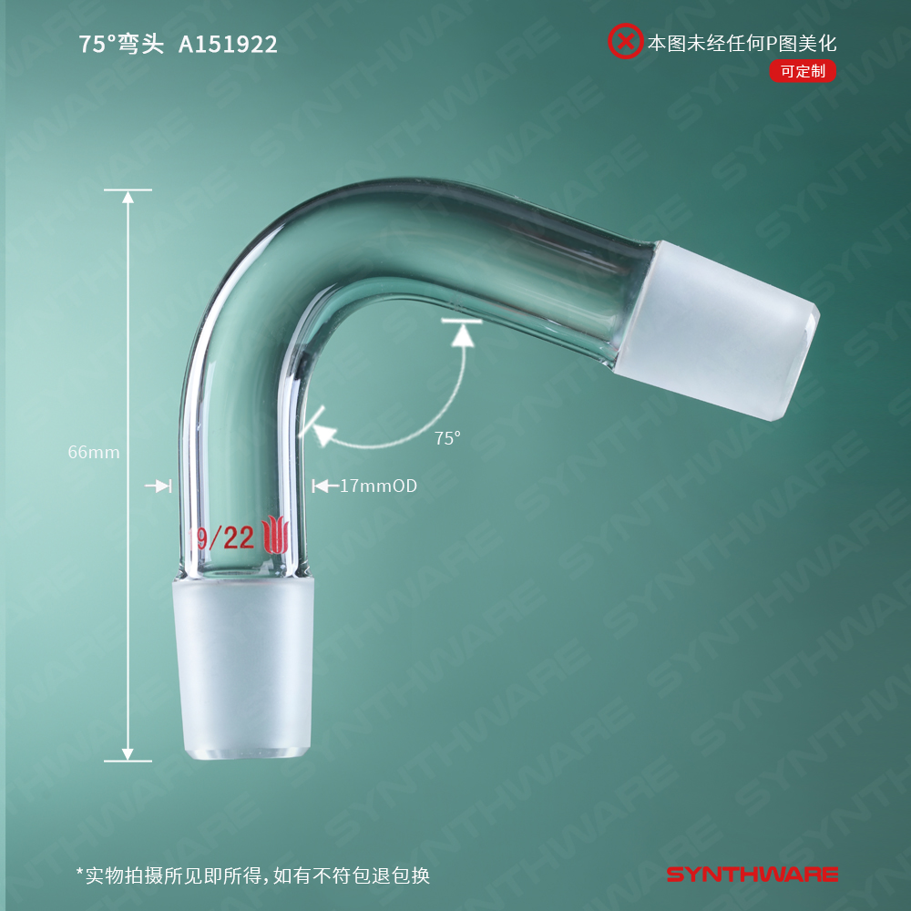 # 两端均为外磨口,呈75°夹角且磨口规格一致。可用在常压蒸馏装置中。