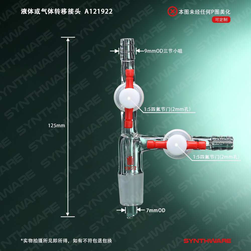 液体或气体转移接头,具2mm四氟节门,19/22 A121922