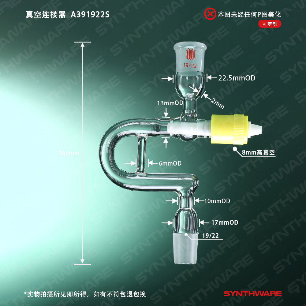 溶剂转移接头,19/22口 新型8MM高真空,真空连接器 A391922S