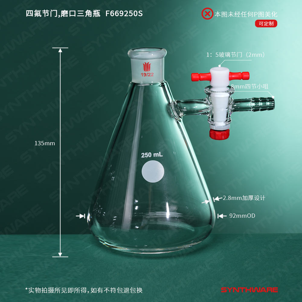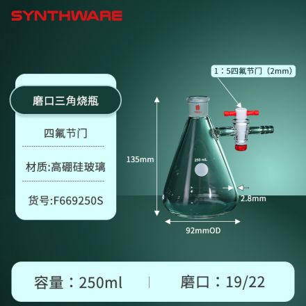 四氟节门,磨口三角瓶,容量:250ml,磨口:19/22 F669250S