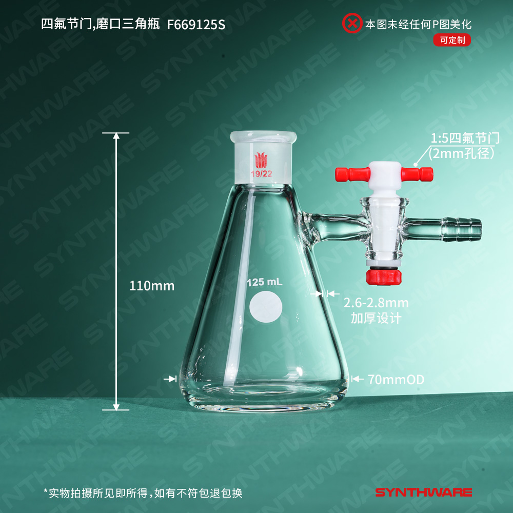 四氟节门,磨口三角瓶,容量:125ml,磨口:19/22 F669125S