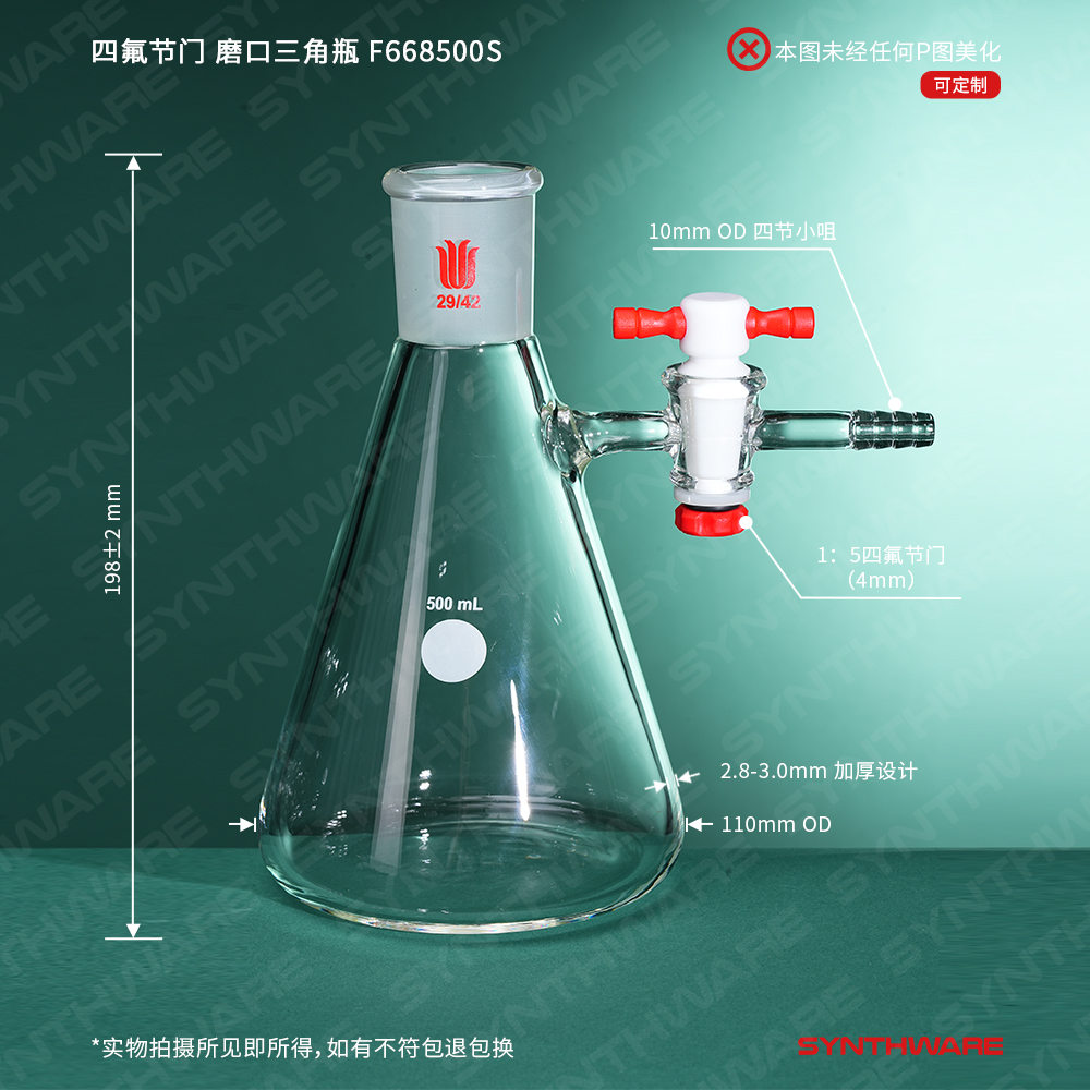 四氟节门,磨口三角瓶,容量:500ml,磨口:29/42 F668500S