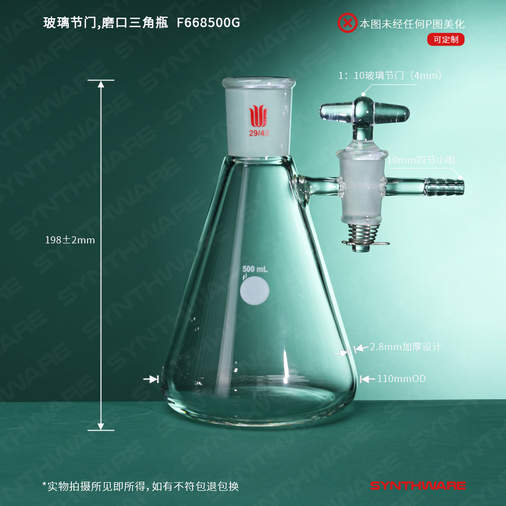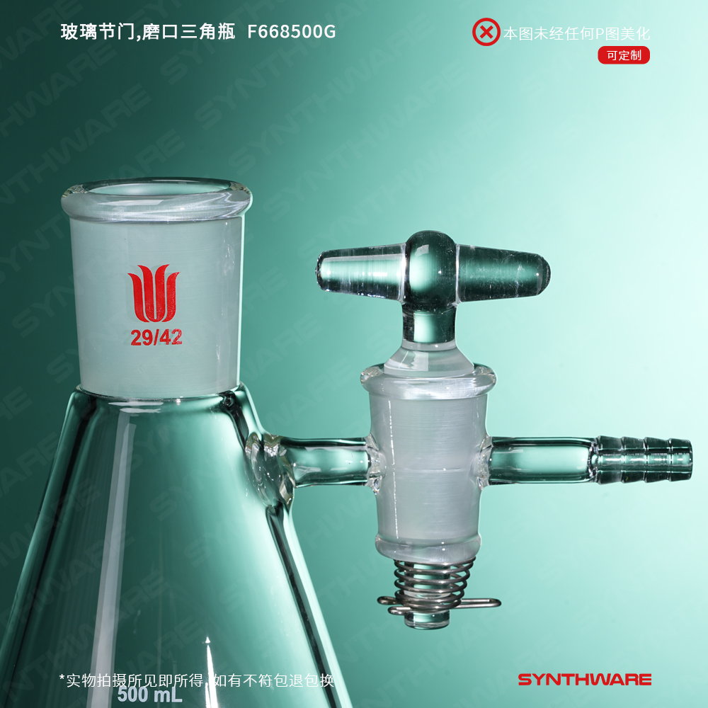 玻璃节门,磨口三角瓶,容量500ml,磨口29/42 F668500G