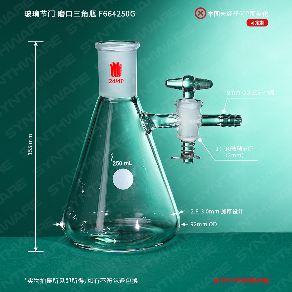 玻璃节门,磨口三角瓶,容量250ml,磨口24/40 F664250G
