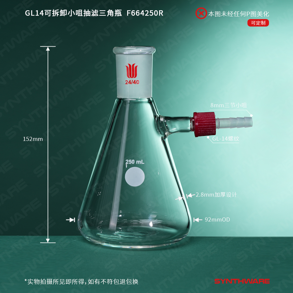 GL14可拆卸小咀抽滤三角瓶,容量:250ml,磨口:24/40 F664250R