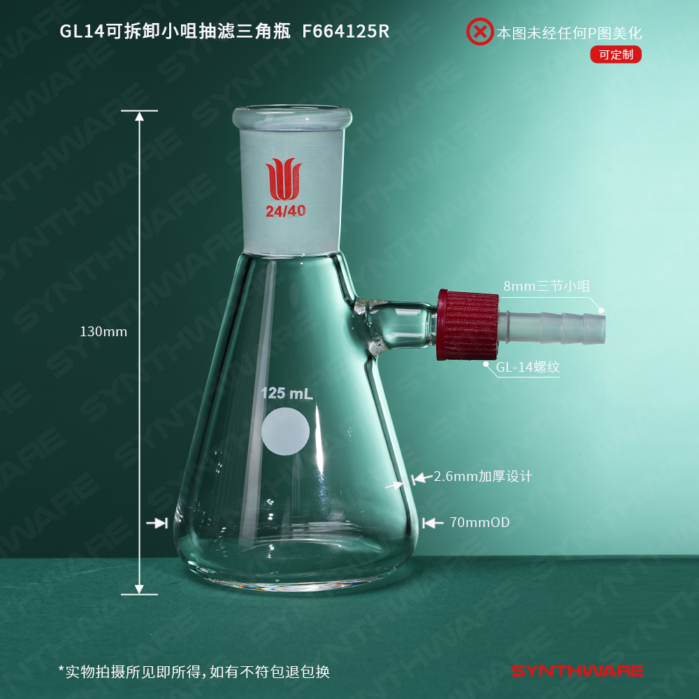 GL14可拆卸小咀抽滤三角瓶,容量125ml,磨口24/40 F664125R