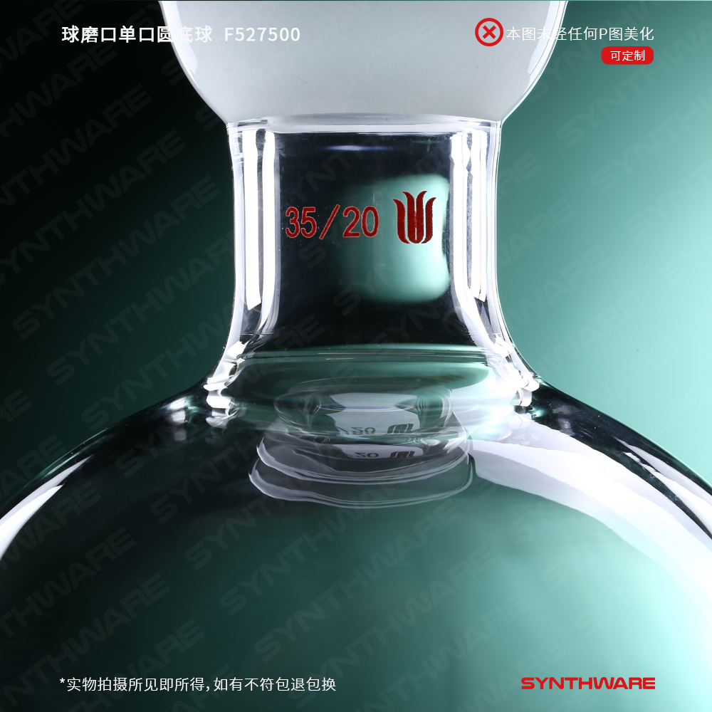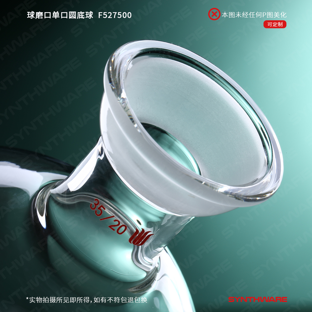 # 接收瓶顶部具35/20球型磨口,磨口精密研磨,搭配CC系列球碗夹,任意小角度偏转仍保持良好密封性。