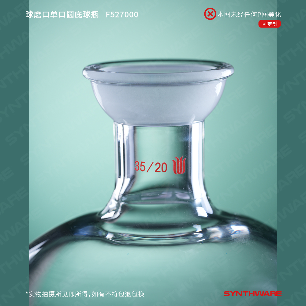 # 接收瓶顶部具35/20球型磨口,磨口精密研磨,搭配CC系列球碗夹,任意小角度偏转仍保持良好密封性。