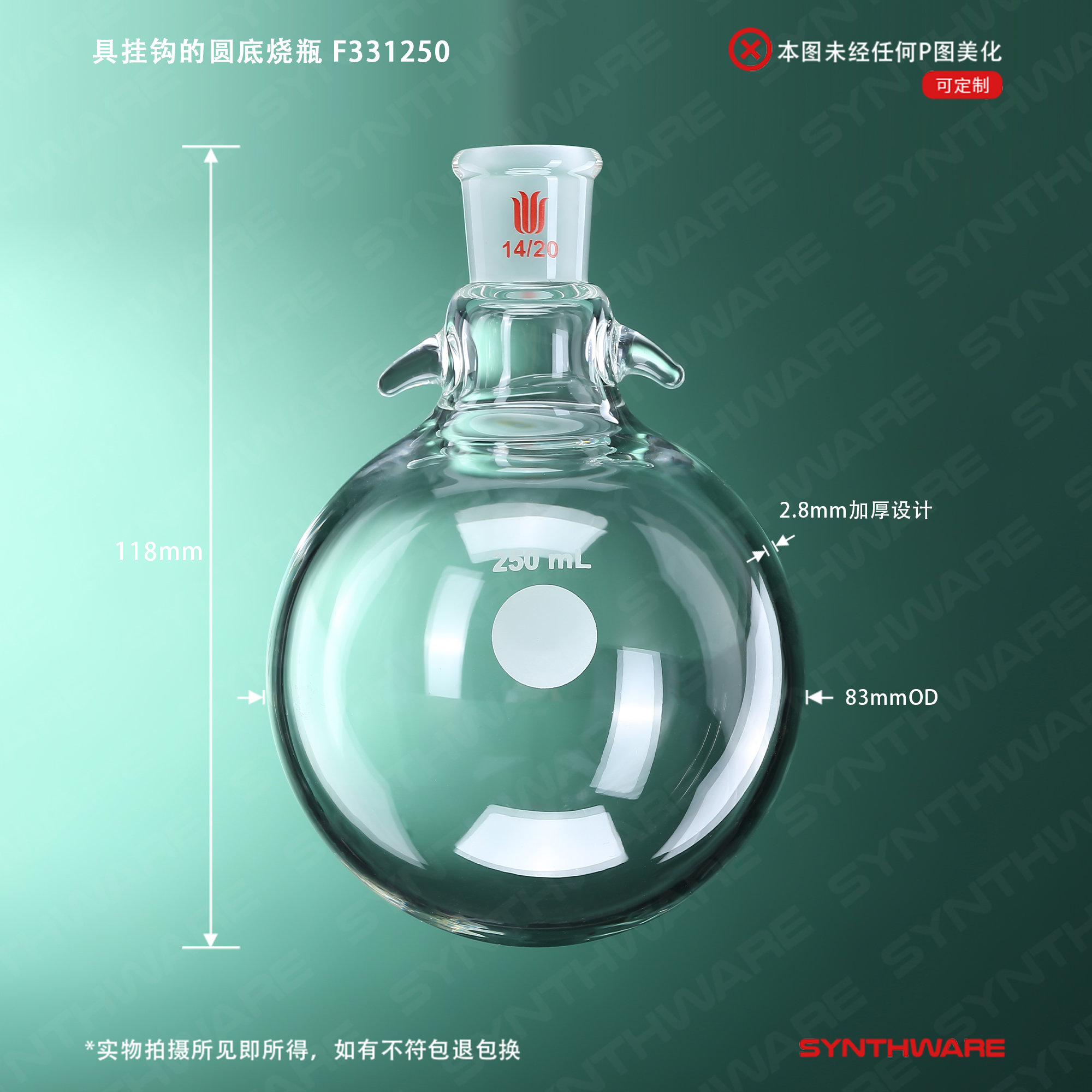 具挂钩的圆底烧瓶,磨口:14/20,250ml F331250