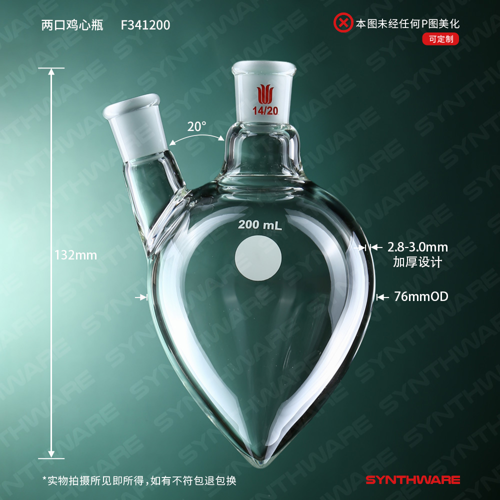 两口鸡心瓶,中间磨口:14/20,侧磨口:14/20,200ml F341200