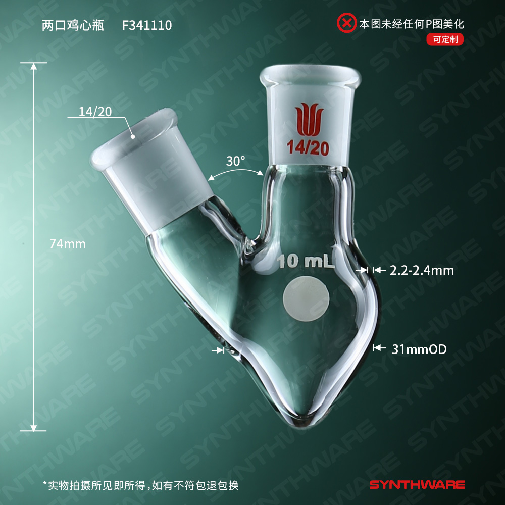 两口鸡心瓶,中间磨口:14/20,侧磨口:14/20,10ml F341110