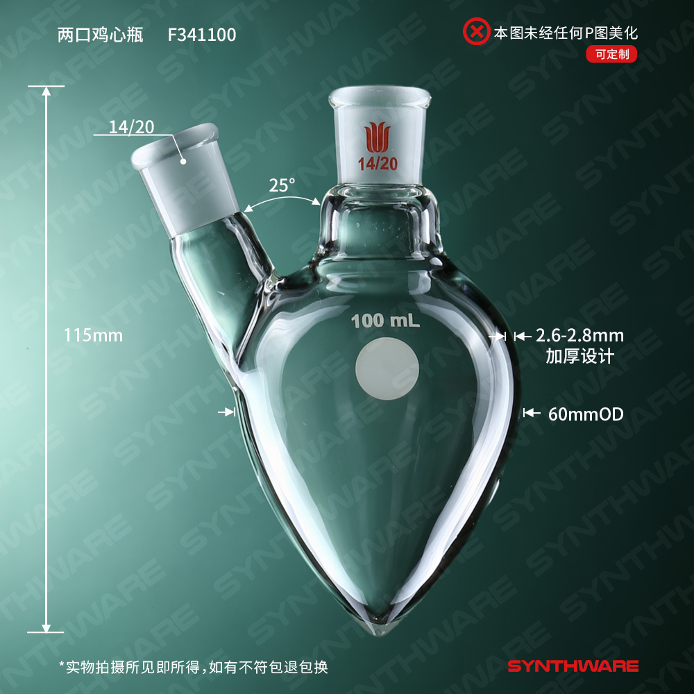 两口鸡心瓶,中间磨口:14/20,侧磨口:14/20,100ml F341100