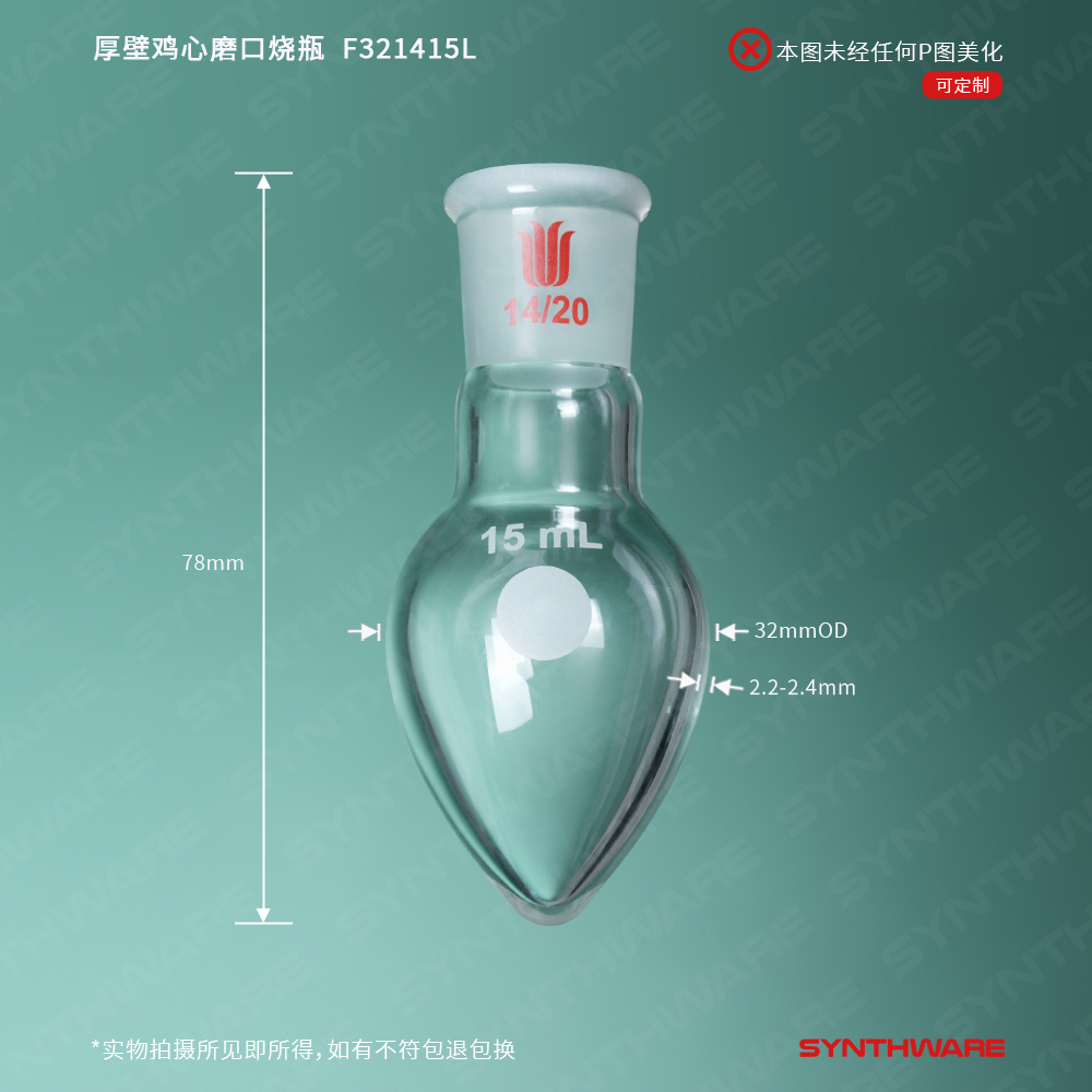 厚壁鸡心磨口烧瓶,高强度,磨口:14/20,15ml脖长15MM F321415L