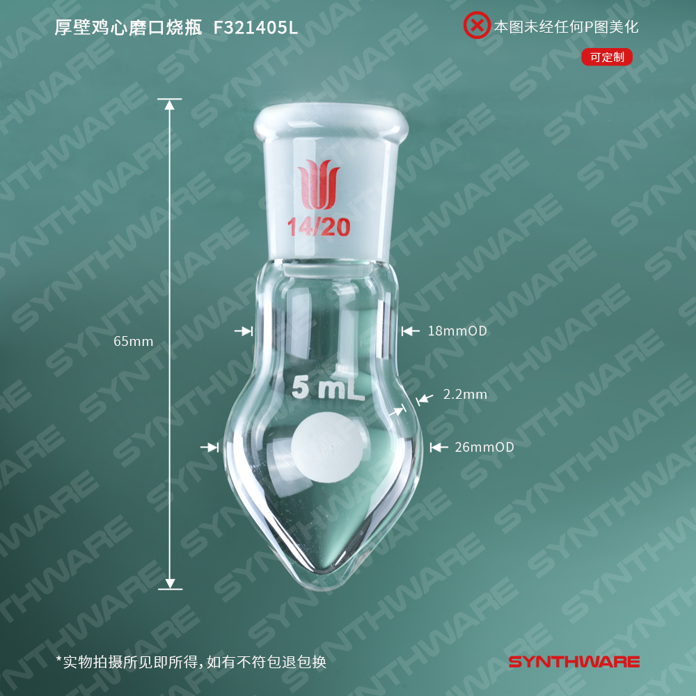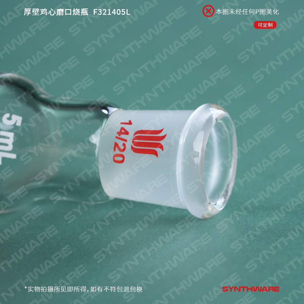厚壁鸡心磨口烧瓶,高强度,磨口:14/20,5ml,脖长15mm F321405L