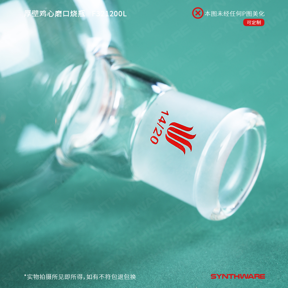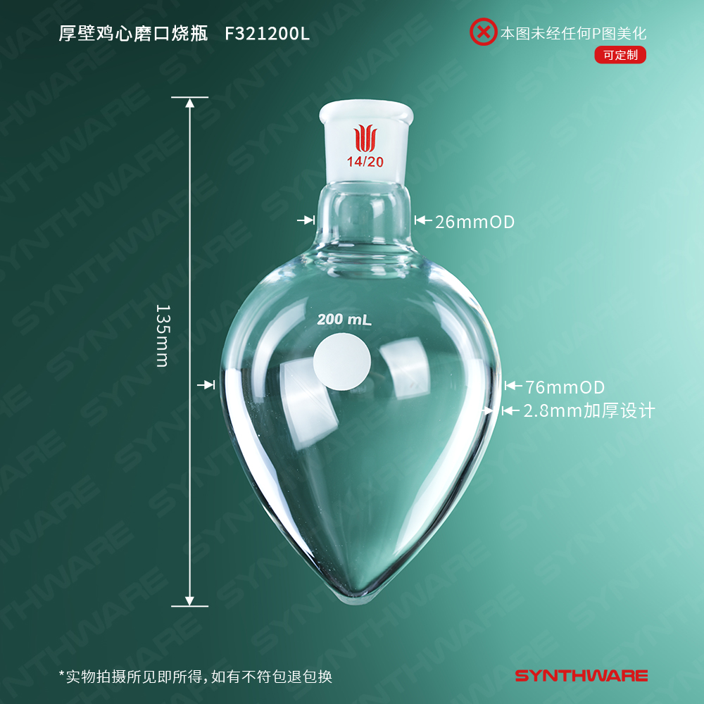 长脖。厚壁鸡心磨口烧瓶,高强度,磨口:14/20,200ml F321200L