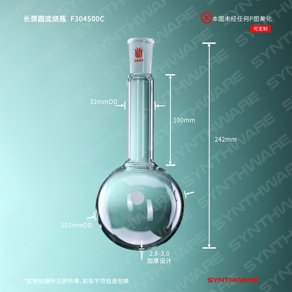 长颈圆底烧瓶,磨口:24/40,容量:500ml,颈长度:100mm F304500C