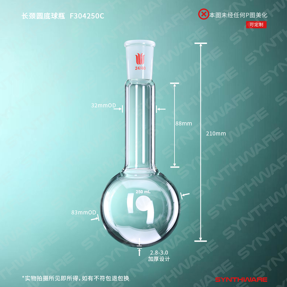 长颈圆底烧瓶,磨口:24/40,容量:250ml,颈长度:88mm F304250C