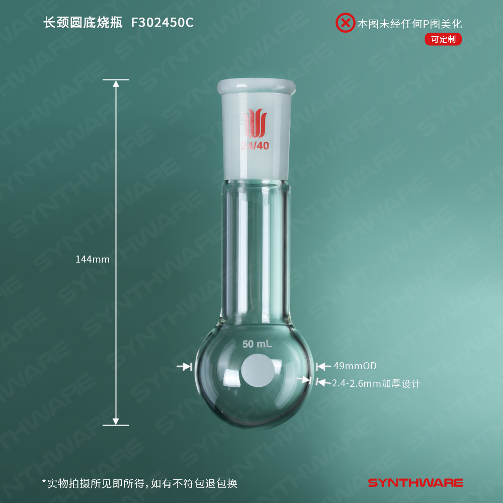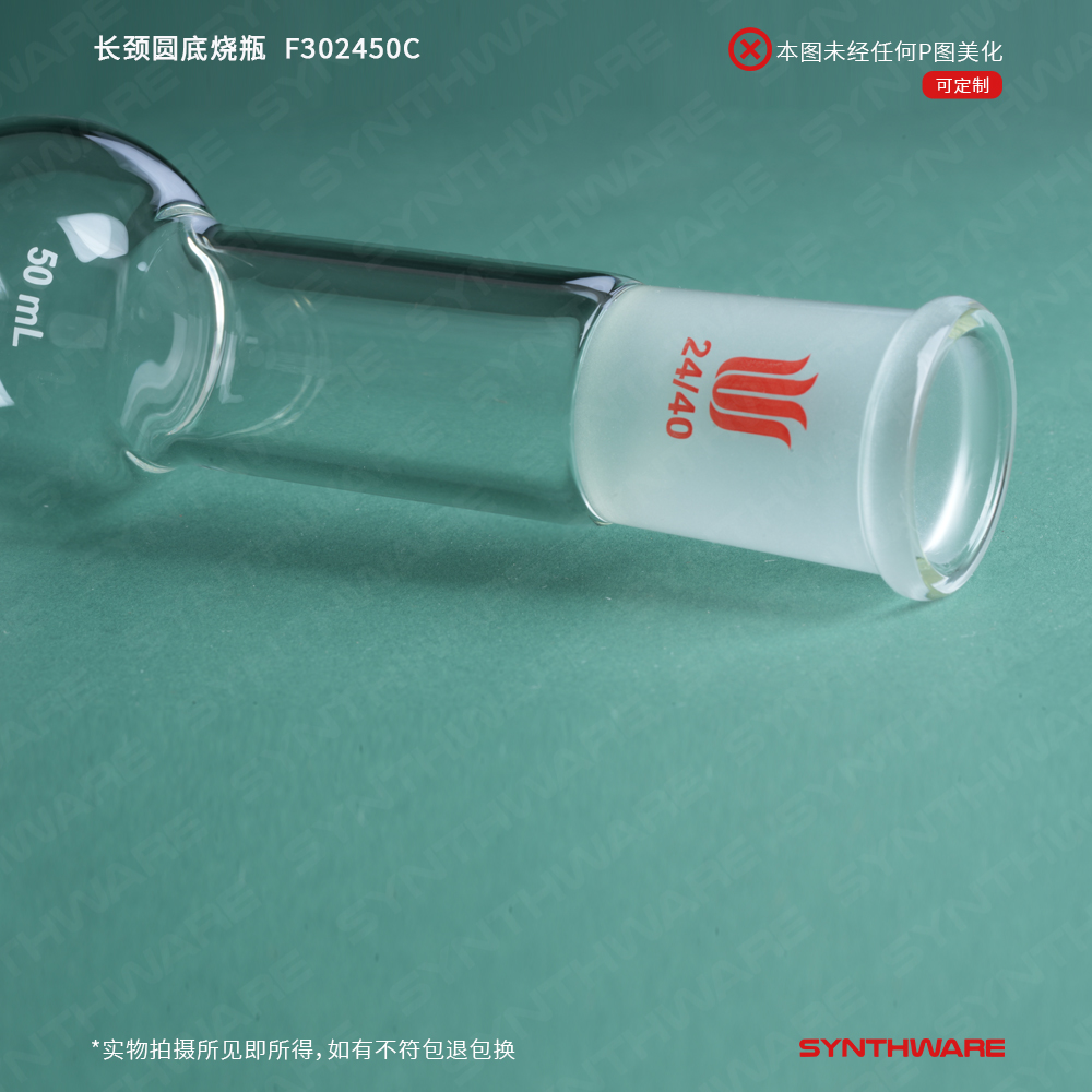 长颈圆底烧瓶,磨口:24/40,容量:50ml,颈长度:55mm F302450C