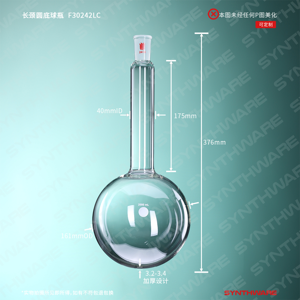 长颈圆底烧瓶,磨口:24/40,容量:2000ml,颈长度:175mm F30242LC
