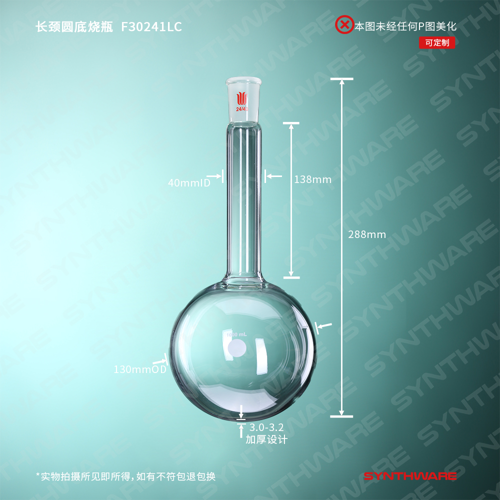 长颈圆底烧瓶,磨口:24/40,容量:1000ml,颈长度:138mm F30241LC