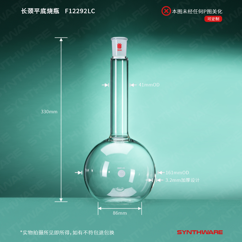 长颈平底烧瓶,磨口:29/42,容量:2000ml,颈长度175mm F12292LC