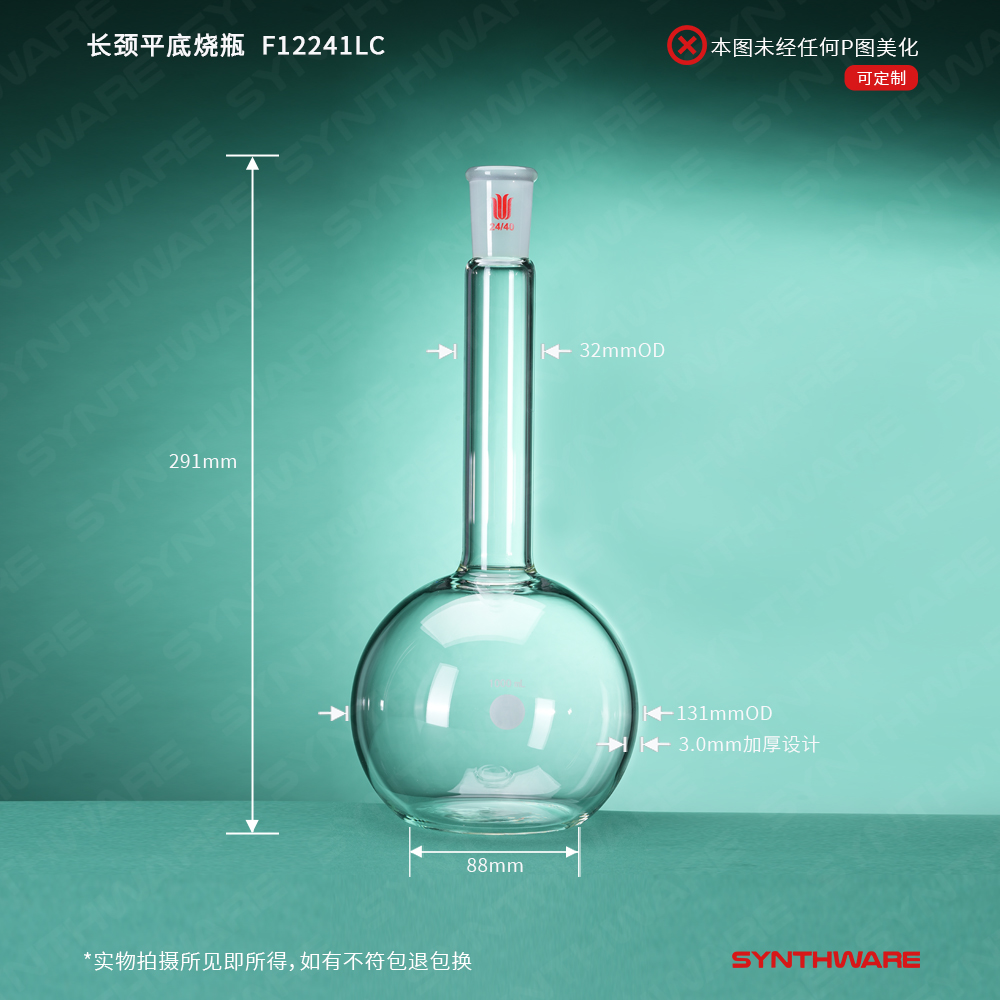 长颈平底烧瓶,磨口:24/40,容量:1000ml,颈长度138mm F12241LC