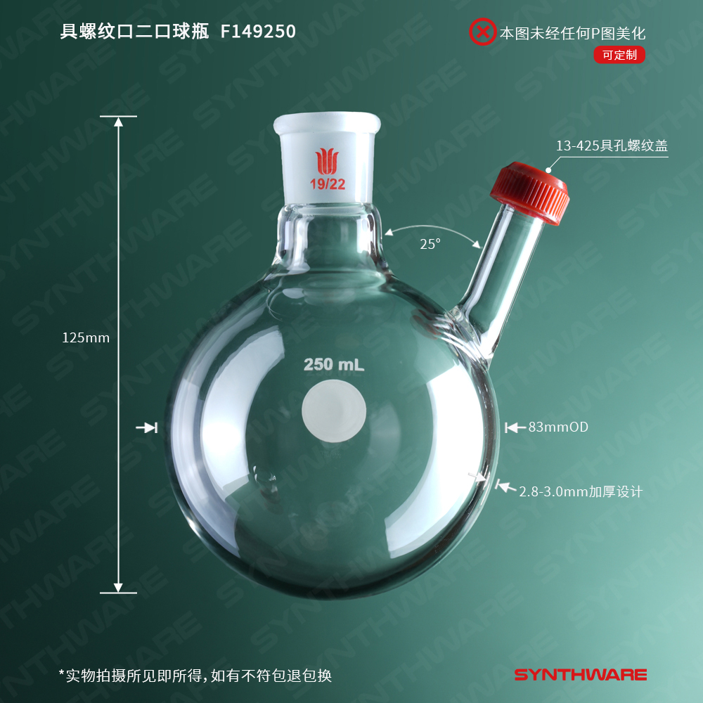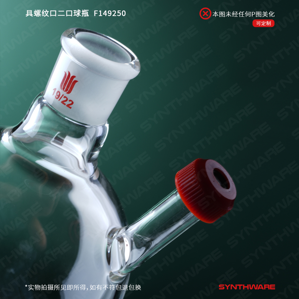具螺纹口二口球瓶,磨口:19/22,100ml F149100