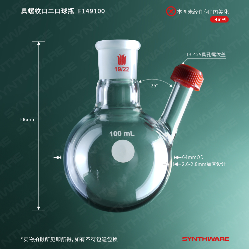 具螺纹口二口球瓶,磨口:19/22,100ml F149100